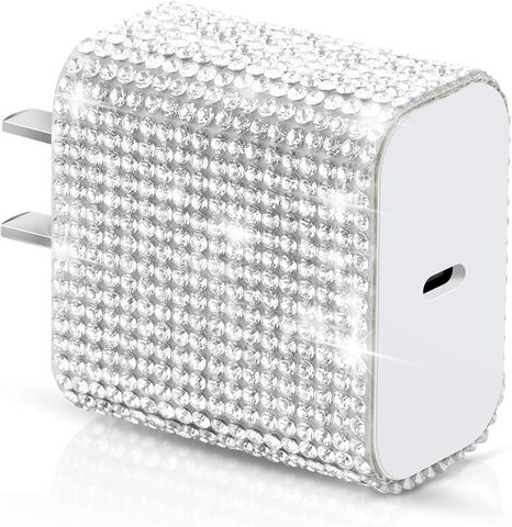 مبيعات مباشرة 20 واط شحن سريع بلينغ بريق الكريستال كتلة شاحن أبيض
