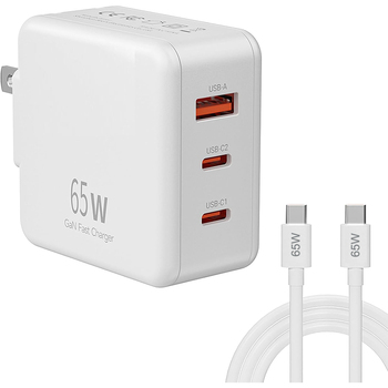 65W GAN USB C Bloque de cargador USB y tipo C 3 puertos USB C Cargador rápido portátil para viajes