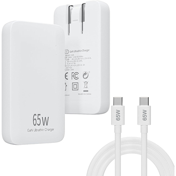 Cargador USB C ultrafino GAN de 65W Cargador rápido USB y tipo C de doble puerto Cargador de pared con enchufe plegable Compatible con múltiples dispositivos