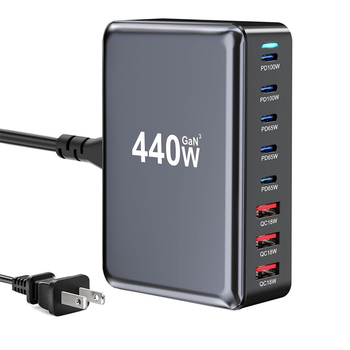 ฮับชาร์จไฟ440วัตต์8พอร์ตชาร์จเร็ว PD QC PPS 100W อะแดปเตอร์สำหรับแล็ปท็อปไอโฟน16/15ซัมซุงกาแล็คซี่