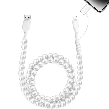 สายเคเบิล USB ประดับด้วยลูกปัดมุก2อิน1สีขาวสำหรับโต๊ะทำงานโทรศัพท์